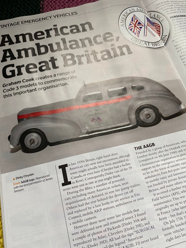 Graham was at the time writing a number of articles for a model magazine about various wartime era organisations, he was keen to write one on the American Ambulance and complete some models for it.